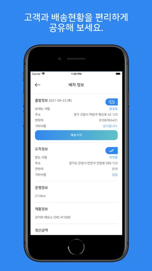• 상, 하차시 진행상황을 관리해 고객에게 실시간으로 배송상황을 알려줌