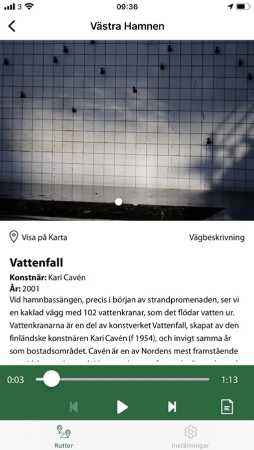 Using the interactive map, listen to stories about the art using the audio guide, while you can follow the different routes easily. The tracks are available in both Swedish and English.