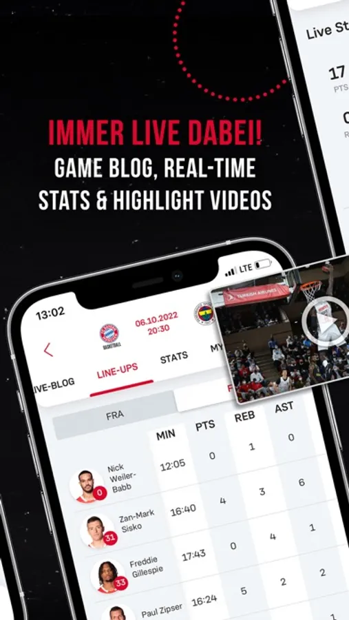 Sei immer Live dabei, immer und überall. Ob per Live Blog, Real-Time Stats oder Highlight-Videos – Erlebe alle Bayern-Spiele in Echtzeit und personalisiere Dein Erlebnis mit der MY PLAYER-Funktion.