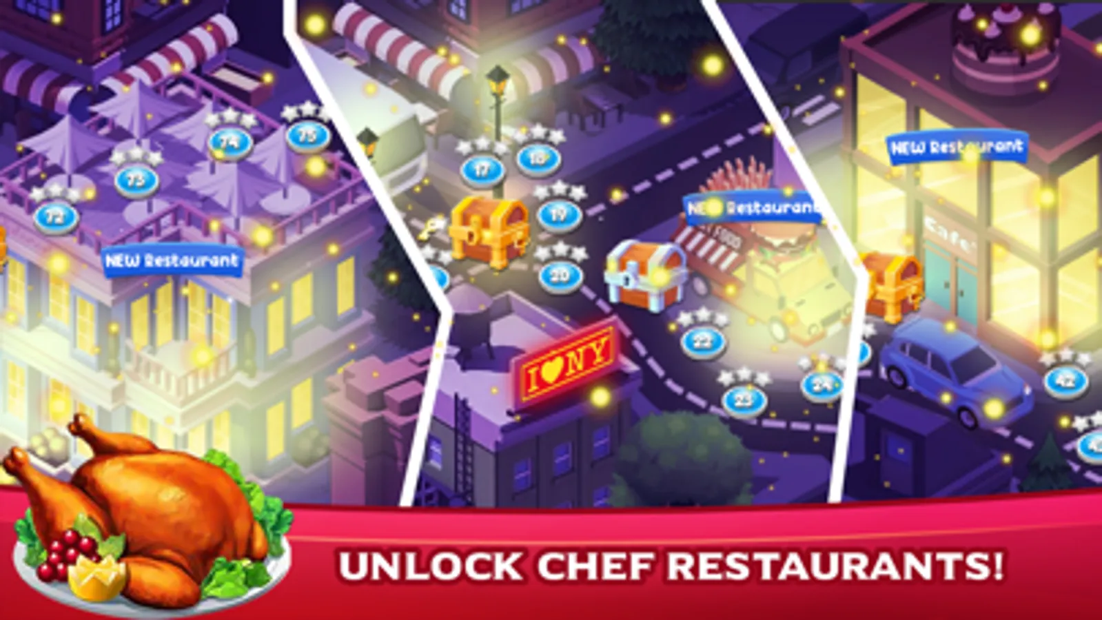 This cooking games offers hundreds of hours of fun and new content will be added monthly for our chef fans! Grow your restaurant business and explore new locations from New York to Paris.