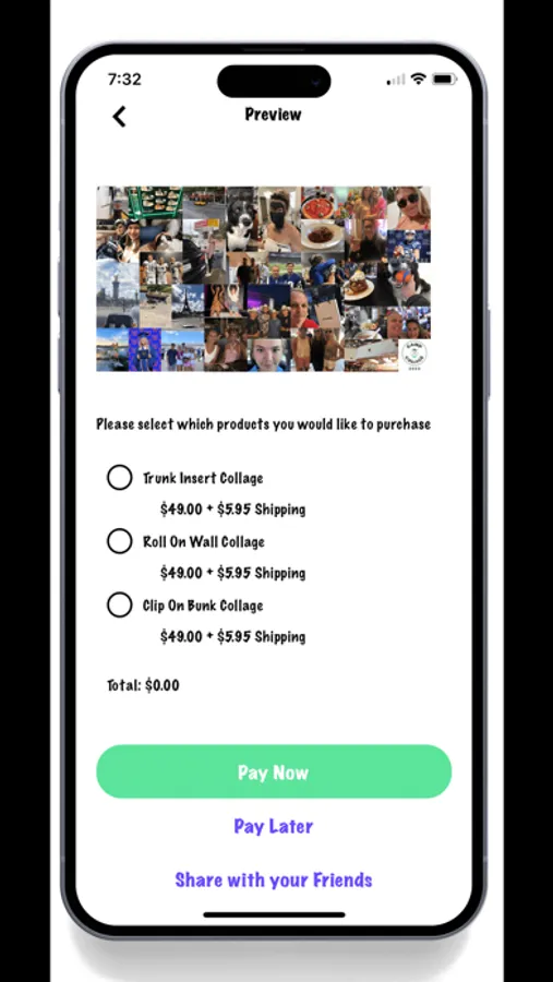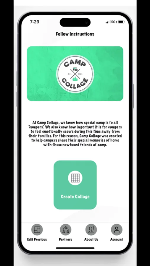 The Camp Collage mobile app is designed to help the families of overnight campers create collage’s. These collage’s create a file that is formatted to fit inside the opening of the campers trunk. Users of the app will be able to invite others to collaborate in creating the collage, customize their collage, and edit previous collage’s. Once the collage is created within the mobile app, users have the option to use the file created to then purchase a customized collage.