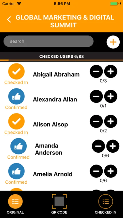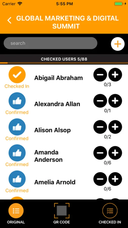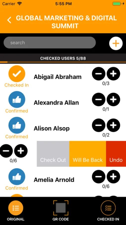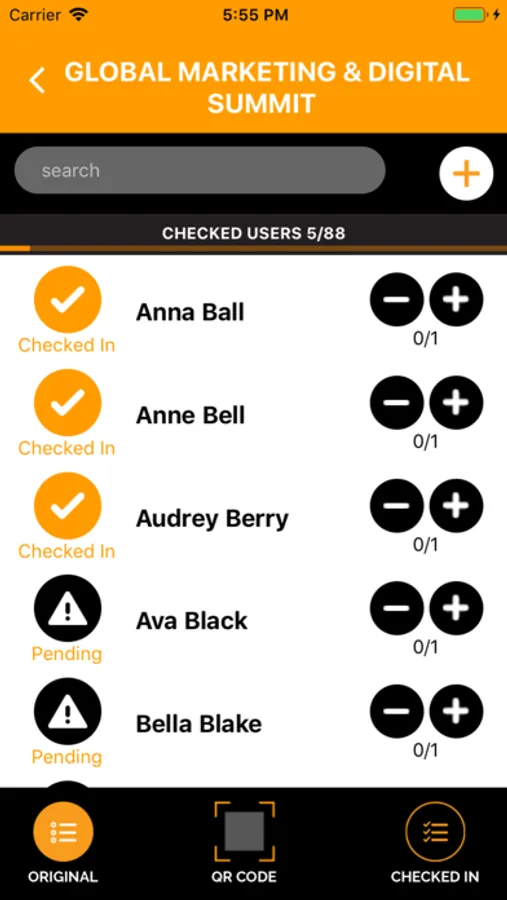 Last-minute participant names can be added directly from the check-in app or from your office on the dashboard, this will get updated on the application across all devices.