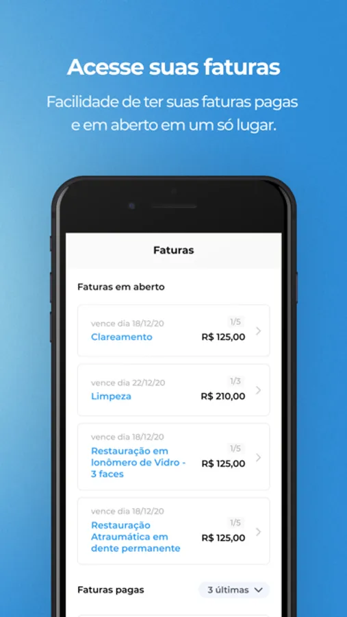visualizar faturas pagas e em aberto;