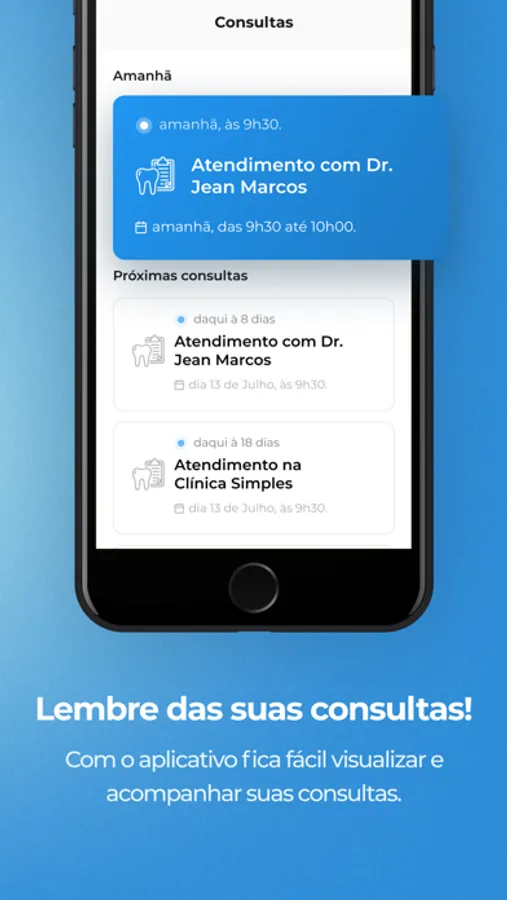 O app Meu Doutor é exclusivo para pacientes de clínicas que utilizam o software odontológico Simples Dental.