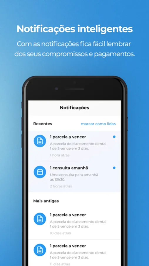Após criar a conta, você terá acesso a todas as informações disponibilizadas pelo seu dentista.