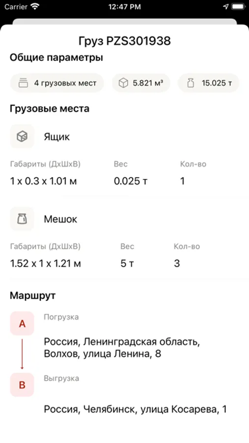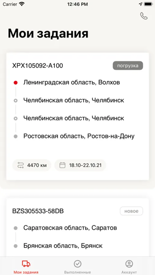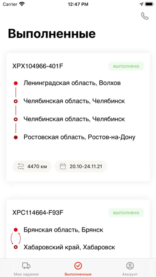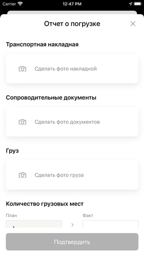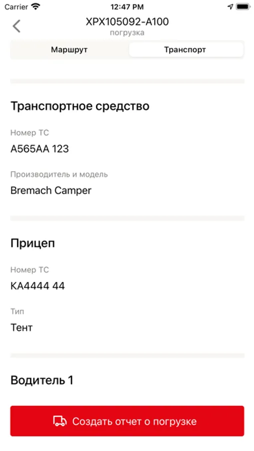 Приложение для водителей, осуществляющих грузоперевозки на транспортной платформе xPL.