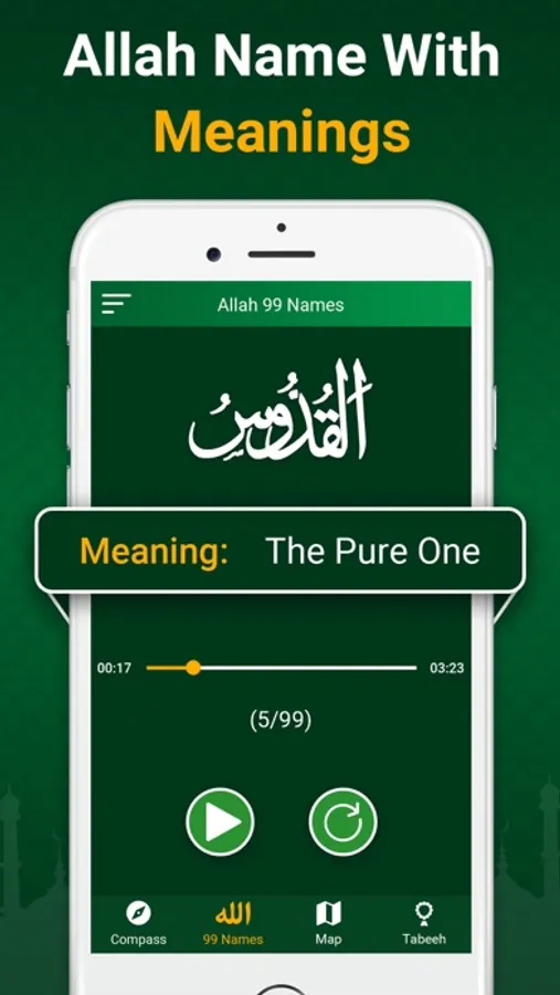Use multi qibla on compass themes for you to measure the accurate qibla locator app. Daily tasbeeh counter app ask you to add or reset your tasbih counter app. Compass app is fast and exactly Mecca finder app with the clear view of 100 names of Allah. Islamic compass for Qibla direction can find out the Kaaba or baitullah for you. 99 names of Allah are written in Arabic along with the meanings of each name and audio is also available . Recite Asma ul Husna, the beautiful names and attributes of Allah Almighty with translation. Recite or memorize the 99 names of Allah with translation of each name. Recite 99 names of Allah any time and any where. Qibla Compass - Qibla direction application use to find the direction the Kaaba in Mecca on maps compass. Qibla compass will find qibla location in the real-time and you can use it anywhere in the world. With GPS technology will help to you find direction qibla quickly and exactly. To show current your location on maps you need to enable gps and connect to the internet. Maps will rotate when you move direction and connect to Kaaba in Mecca. We provide two modes for qibla locator. Recite 99 names of Allah and ask compass for qibla direction. Islamic qibla finder help you to find exact direction before prayer times. Islamic app contains 99 Allah Names with english meanings. Short english translation of Arabic Allah names is provided for you to know meanings in international languages.