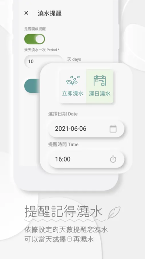2. 澆水提醒: 個別植物可以設定澆水提醒(幾天一循環)