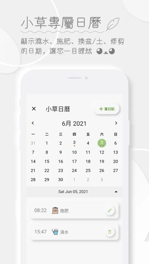 6. 日曆: 可以看到植物所有澆水、換盆、施肥、修剪的日期,超級好用!