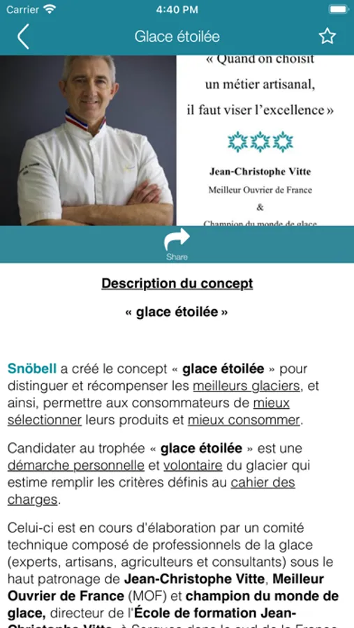 Pour se distinguer, les glaciers fabricants français abonnés peuvent candidater (sous conditions) au trophée « glace étoilée » pour être classés parmi les meilleurs glaciers de ce monde.