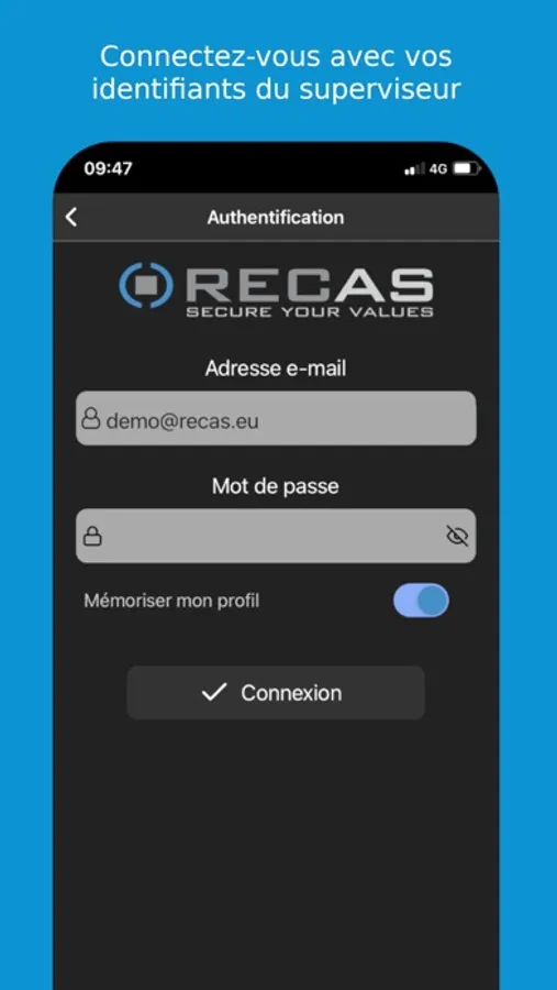Recas Connect vous permet de vous connecter au superviseur Recas Connect et ainsi accéder aux enregistreurs pour visualiser en direct vos caméras, relire des séquences vidéos, exporter des séquences, et configurer votre enregistreur.