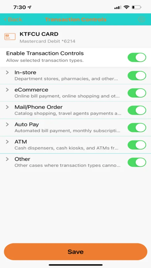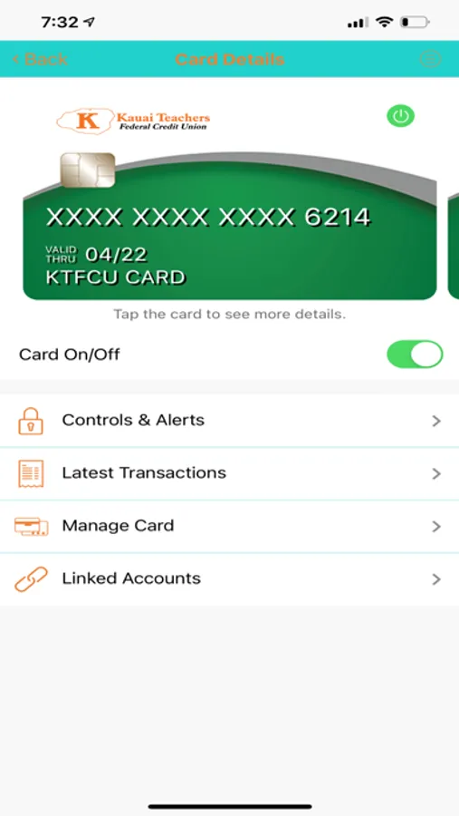 KTFCU SecureCard is an easy-to-use mobile app that gives debit/ATM cardholders the ability to turn on or off their cards in real time, securing accounts when the cards are not in use. Cardholders can set controls for the use of their cards and receive alerts for certain types of card activity, use GPS-enabled location parameters to limit where cards can be used and to block out-of-area attempts, and set and adjust spending limits, adding security and enforcing budget discipline.