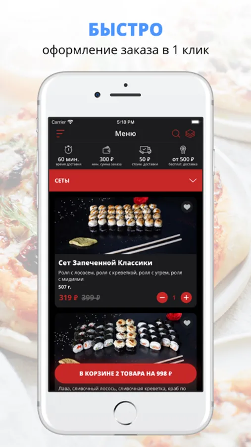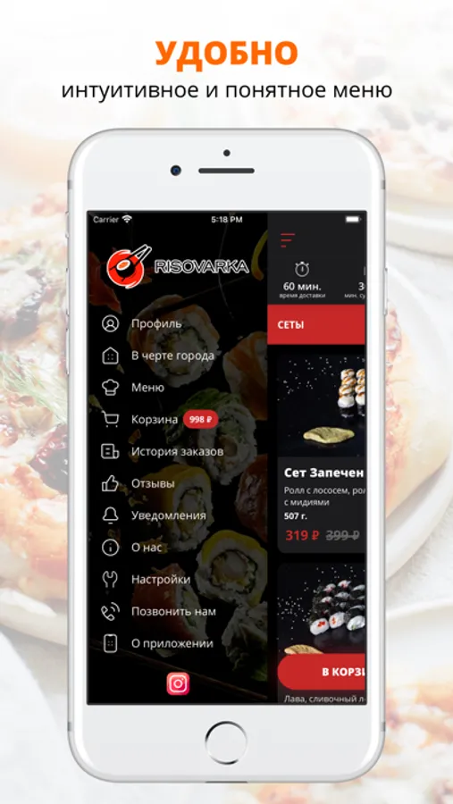 Выбирайте вкусные блюда из нашего меню и заказывайте пиццу, роллы и другие блюда с доставкой на дом!
