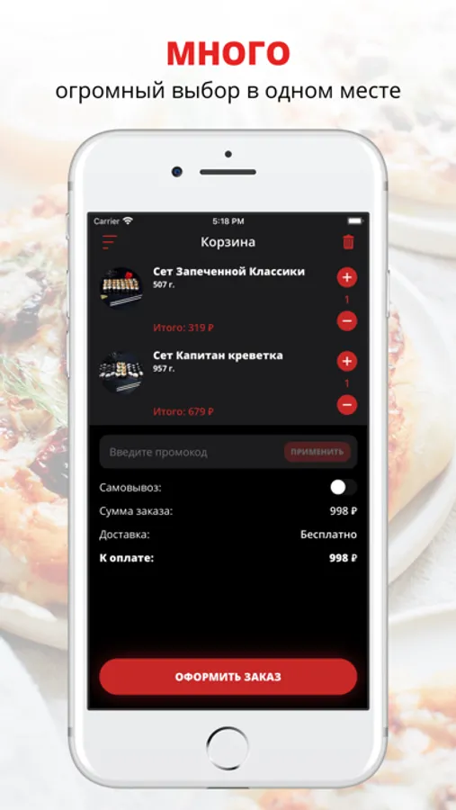 Скачивайте наше приложение, оформляйте заказ и наслаждайтесь любимой едой, где бы Вы ни были! Приятного аппетита!