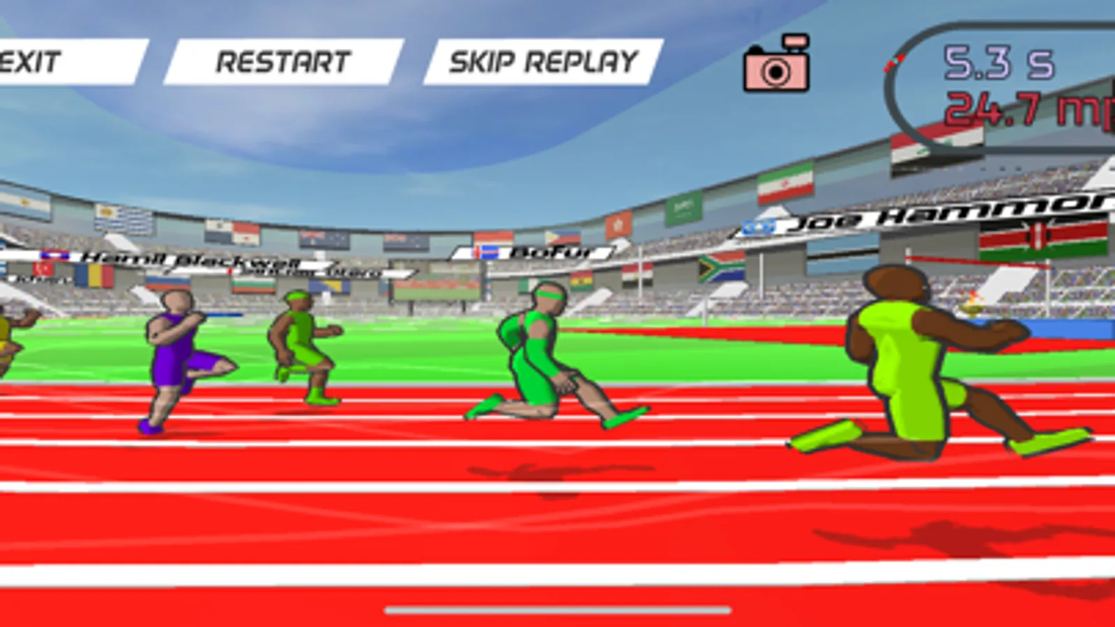 With the full version, you'll get five more iconic track and field race distances to master - the 200m dash, 400m dash, 60m dash, 110m hurdles, and 400m hurdles - as well as the ability to create your own racers with customized appearances and stats!
