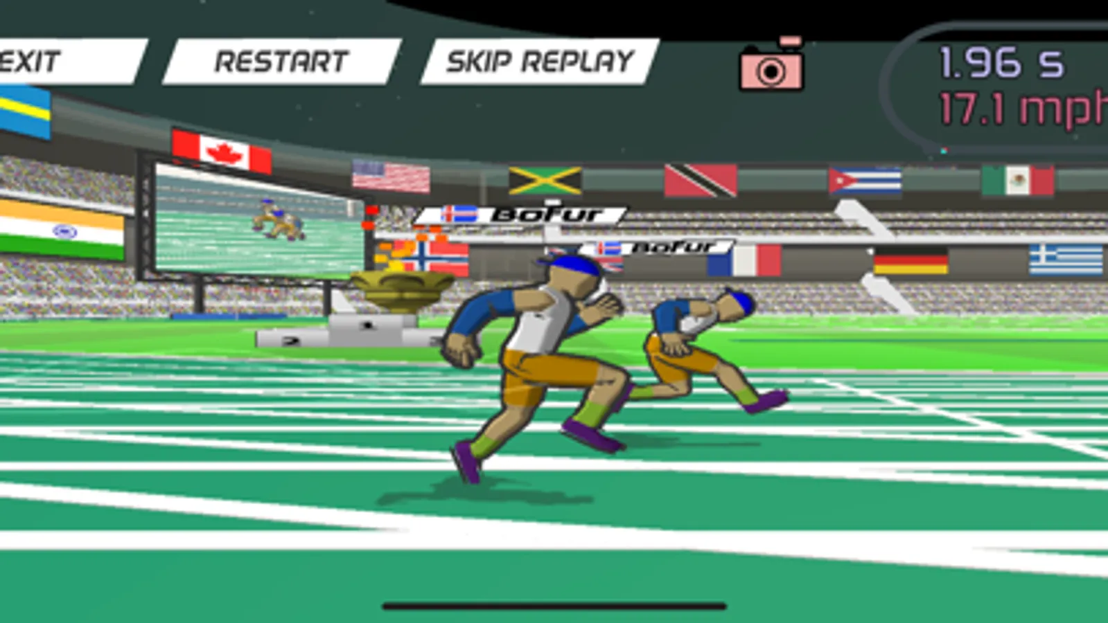 Race against ghosts of real players, go head to head with the AI racers, or run a solo time trial. Then see where you stack up against the rest of the world on the global leaderboard! Watch replays of your race with cinematic camera angles, and choose the stadium theming from 8 colorful presets!