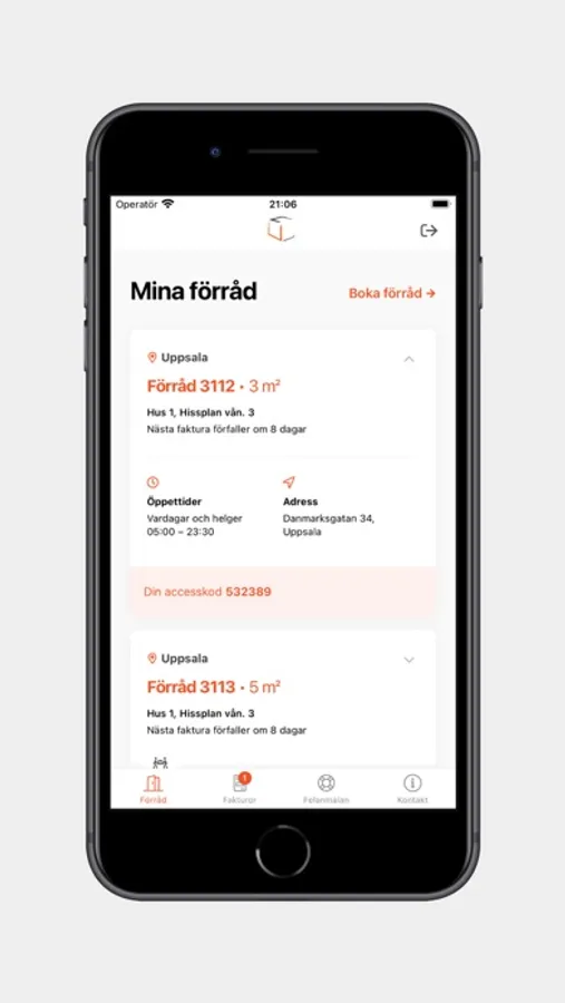 - Hitta till din förrådsanläggning, förråd och accesskod