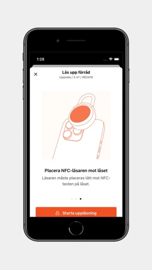 - Förråd utrustade med våra moderna NFC-lås öppnas med appen