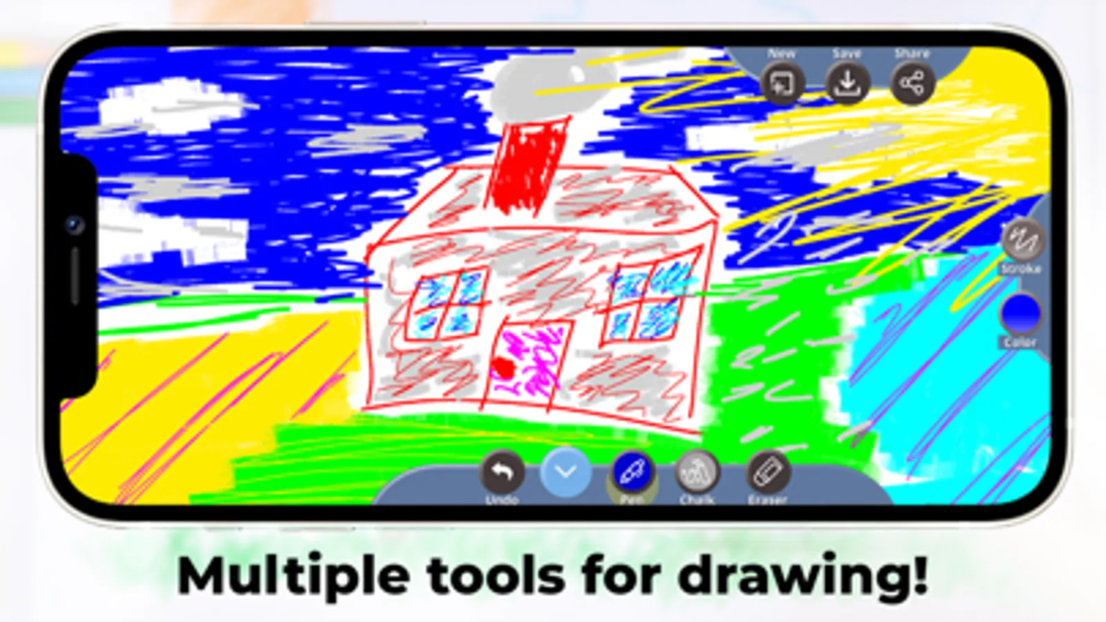 Whether you want to draw shapes, plot graphs, sketch out cool images or simply express your artistic skills, this whiteboard drawing & drawing board offline app is an amazing pick for you. Simply select the right type of drawing tool and start swiping on your screen to create strokes and draw shapes on the chalk board. The drawing board app offers you maximum freedom of drawing, so you need not worry about running out of blank board pages as you can always get a new chalk writing page over and over again.