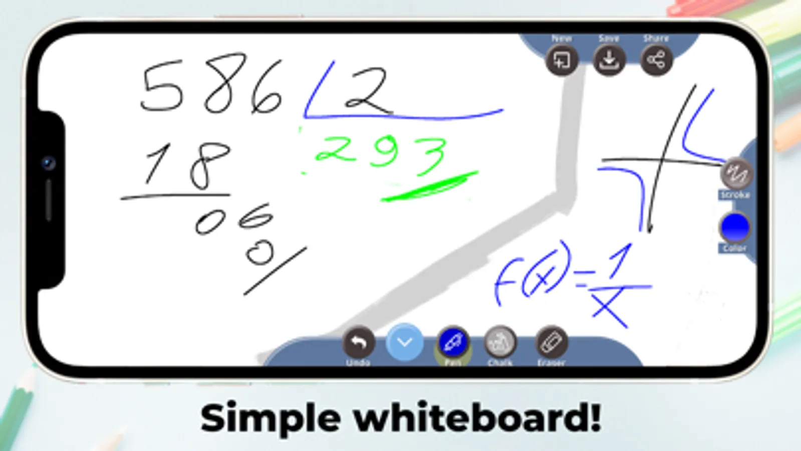 Do you need a chalk board app to teach your students? Or do you want to explain something to your kids? How about using a chalk board to practice math or let your kids draw? In any situation, our whiteboard app comes in handy.