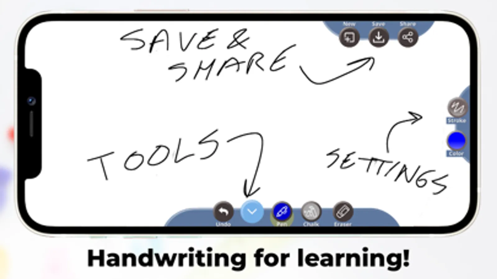 You can not only choose between different drawing board modes such as white chalkboard or sketchboard, but also use different chalk writing tools for handwriting practice. Experience an immersive whiteboard drawing and board writing experience with this free and easy to use white app.