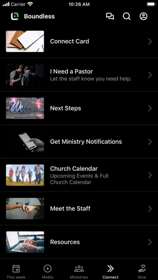 This app will help you stay connected with the day-to-day life of our church. With this app you can: watch or listen to past messages; stay up to date with push notifications; share your favorite messages via Twitter, Facebook, or email; sign up and communicate with small groups, and download messages for offline listening.