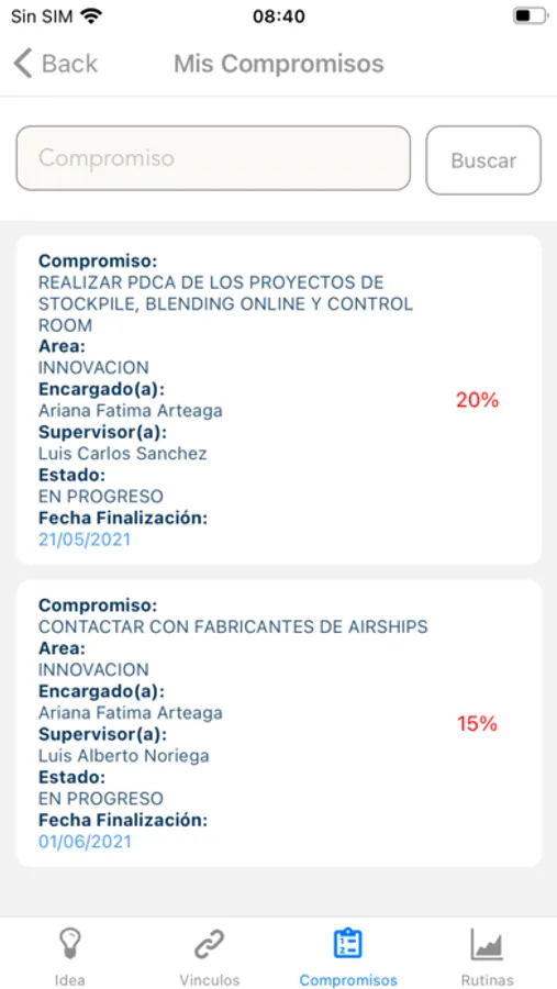 Referente a los compromisos, basamos la gestión en un tablero Kanban con todos los compromisos a trabajar durante cada cambio de guardia.