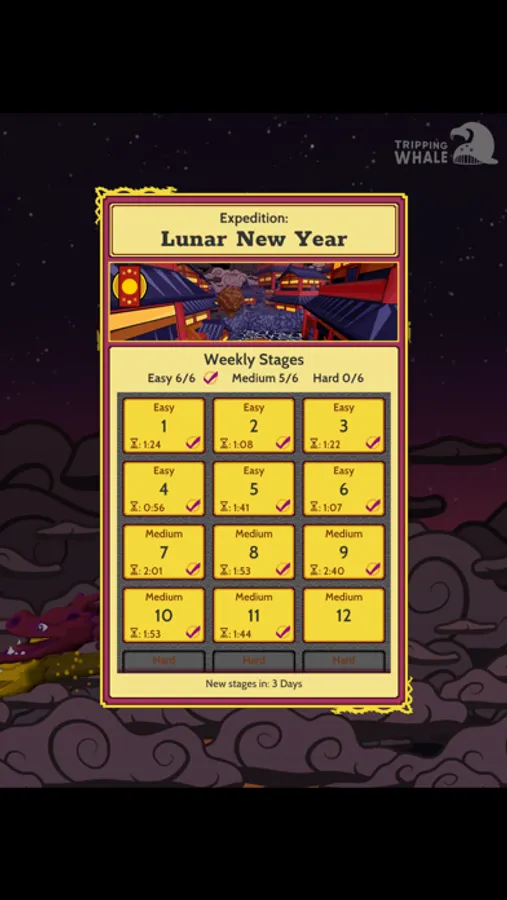 New stages are released every week in three difficulty tiers. Complete each difficulty every week for bonus rewards.