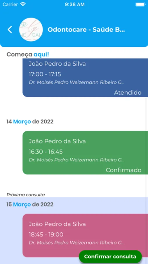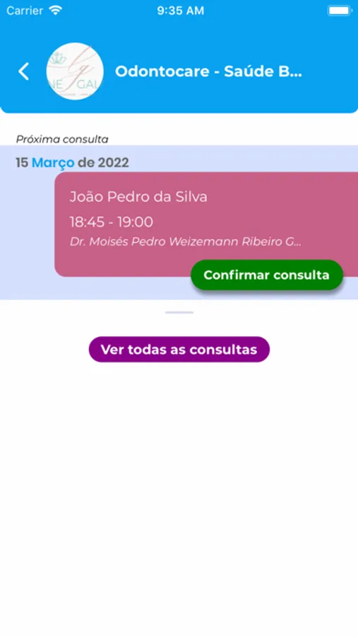 Através dele você pode visualizar, confirmar ou cancelar suas consultas.