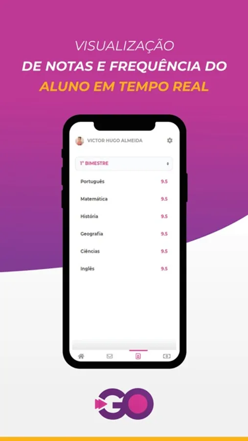A escola envia comunicados, compartilha conteúdo programático, eventos, notas, boletos e ocorrências com as famílias de forma simples via aplicativo.