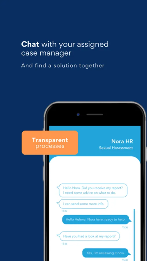 - Find resolution with the case manager assigned to your report through an integrated messaging platform.