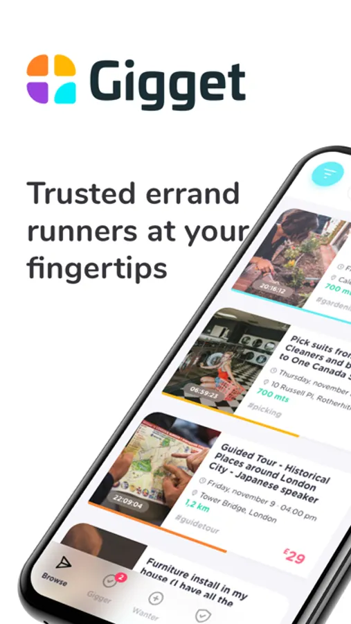 Get anything done, anytime, from anywhere with Gigget! We’ve created a hassle-free service that allows you to get odd jobs done with just a few clicks. Whether it’s walking your dog, running errands, or picking up laundry, we’ve got you! Our platform connects you to hundreds of trusted local workers in real-time, who you can choose for your task based on their profile and reviews. So, make life easier with Gigget and free up time for what matters most, or become a Gigger yourself using the same app!