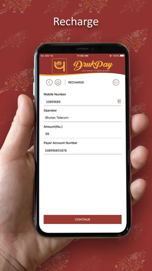After downloading the Mobile App, existing internet Banking Users can log in using their user id and password. New Users are required to visit the nearest Branch of Druk PNB for activation of Mobile Banking.