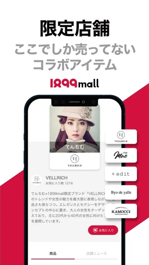 ライブコマース:各ブランドから配信されるLIVE配信を視聴できます。写真だけでは伝わらない素材感やサイズ感などが分かりやすくなります。