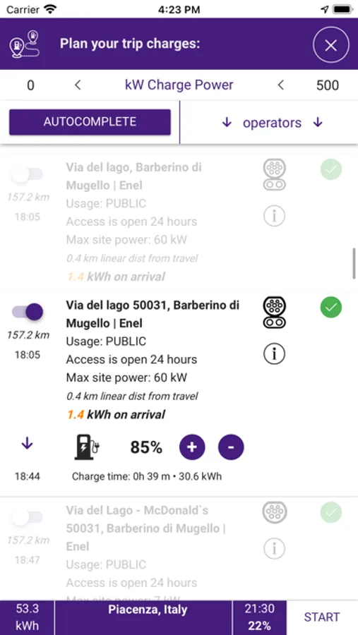 Power Cruise Control® (PCC) is an intelligent Navigation App, which avoids range anxiety.