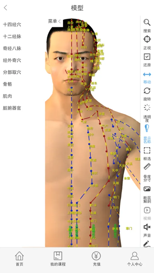 3D经穴模型设备借助现今最先进的软硬件技术及多媒体手段,基于国家“十三五”规划教材《人体解剖学》与《经络腧穴学》,用三维人体模型真实再现中医经络理论中的全部十四经经穴及常用奇穴,并实现穴位、皮肤、肌肉、骨骼与脏腑器官等内容的显示。设有专业的3D经穴人体模型和耳穴模型,方便学员学习经络腧穴和耳穴知识点,并可随时查询腧穴的正确定位。