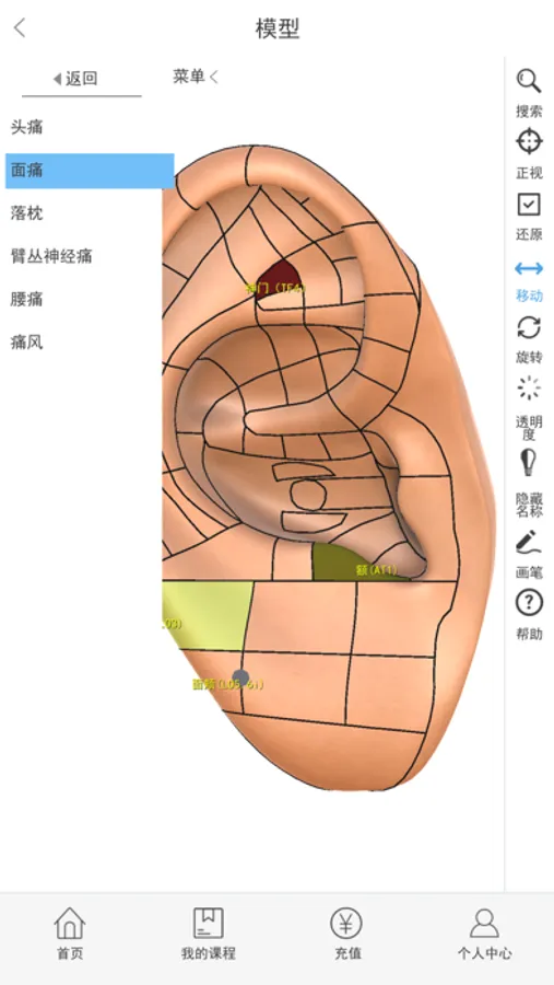 3D耳穴模型根据中国传统中医理论为基础,建成以3D数字化中医“铜人”为载体的耳穴、耳穴疗法互动展示系统,实现耳穴查询、信息显示、疾病耳穴疗法模拟及交互控制等基本功能。能有效的解决传统中医教学受到的时间、地点限制的不足。让学习者能有更多个性化的选择,自由的选择学习方式和学习时间。
