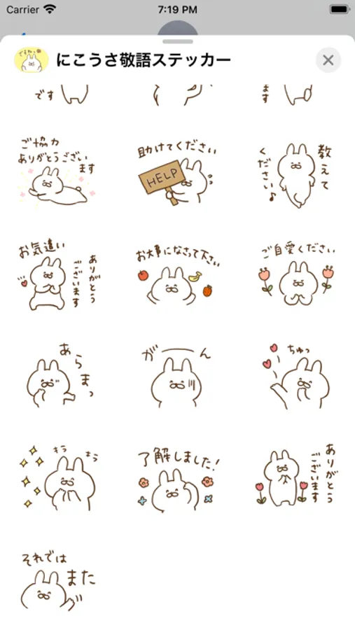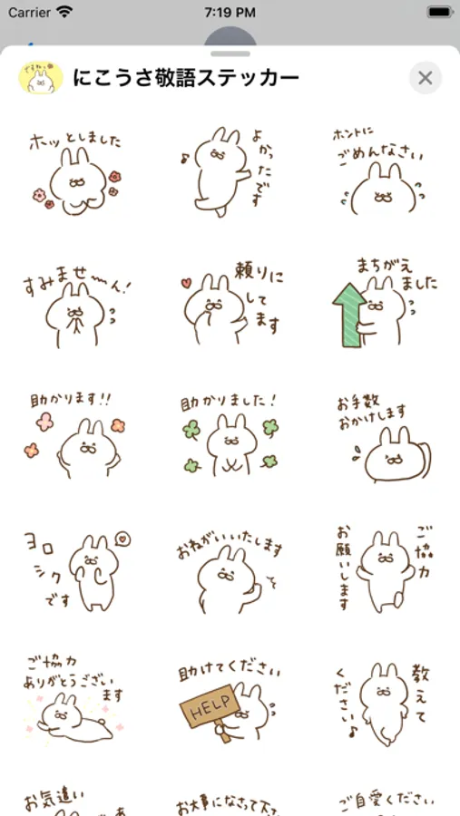 ゆるい敬語のにこにこうさぎ、にこうさのステッカーです。