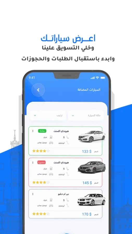 تطبيق كيرا لشركات تأجير السيارات يساعد شركات تأجير السيارات على تسويق وارشفة وادارة عمليات الشركة وبيانات العملاء بطريقة سهله ومنظمة .