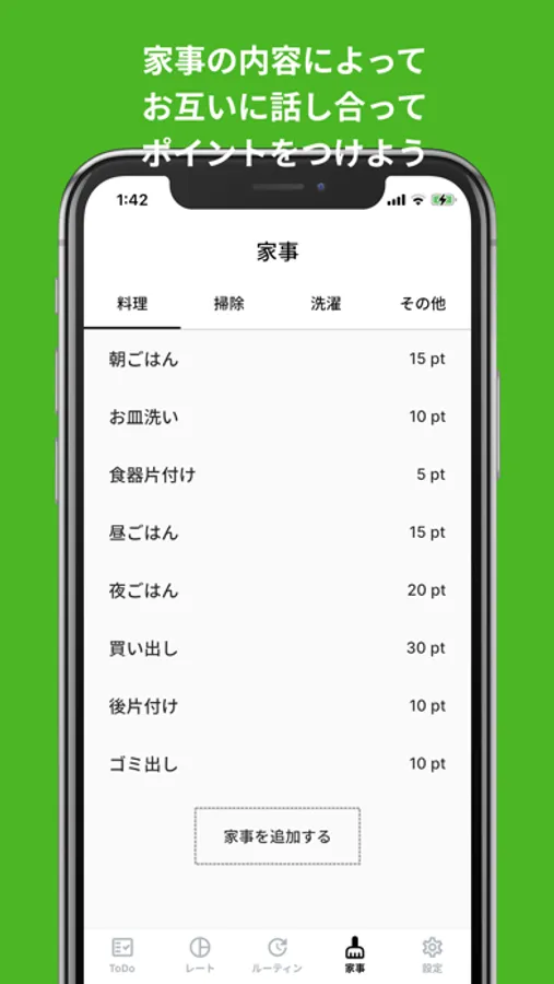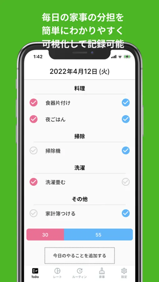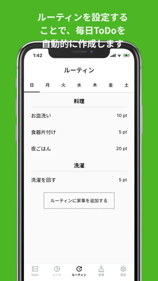 家事を登録して、ルーティーンを登録することで、毎日のToDoが自動で作成されます。