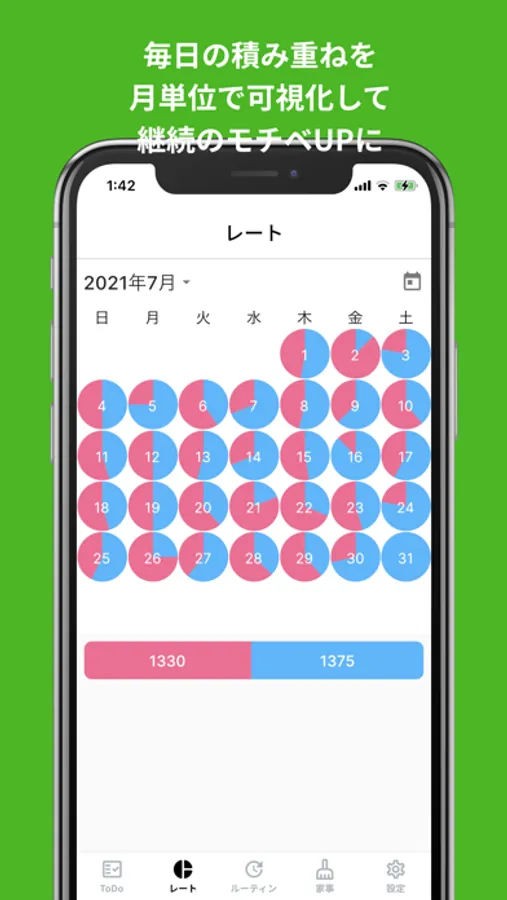毎日のToDoの記録はレートタブからご覧いただけます。