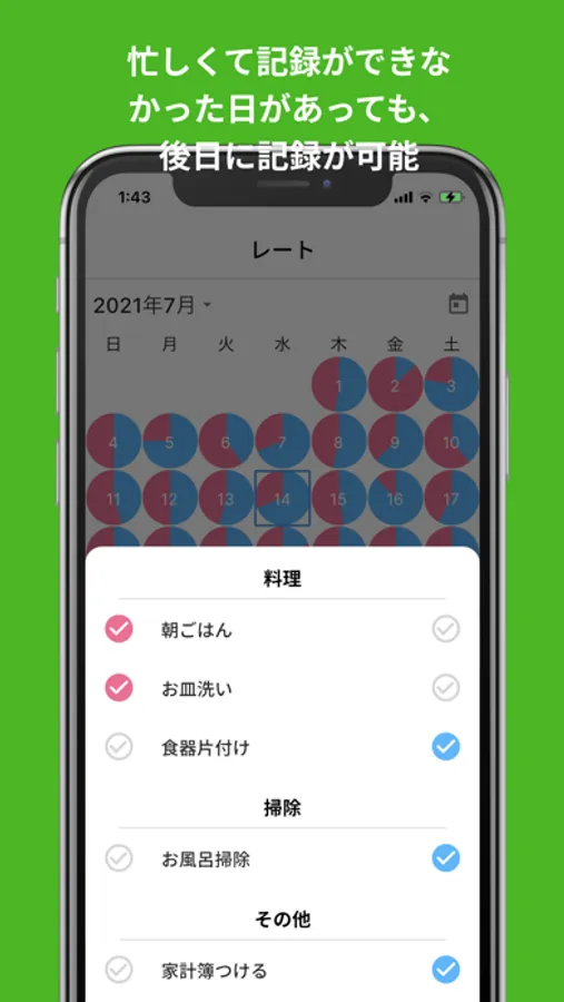 このアプリは夫婦間の家事の分担率を可視化できるアプリです。