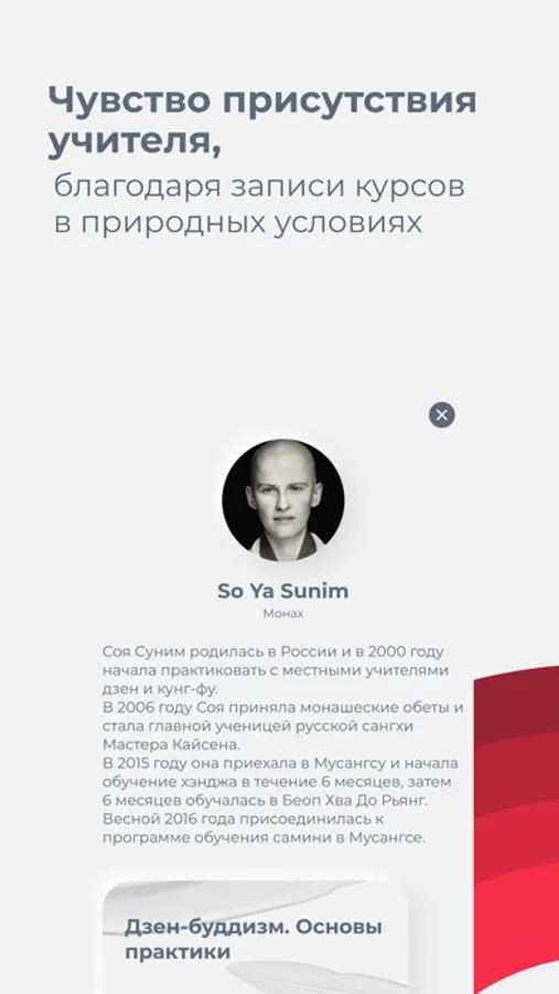Подготовленные уроки — это полноценные духовные практики, для которых не нужно никакое оборудование и специальные навыки: только ваша мотивация жить счастливой и спокойной жизнью. Ежедневное выполнение практики повышает уровень осознанности с каждым днем.