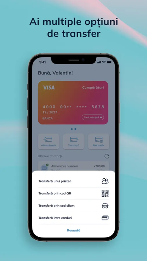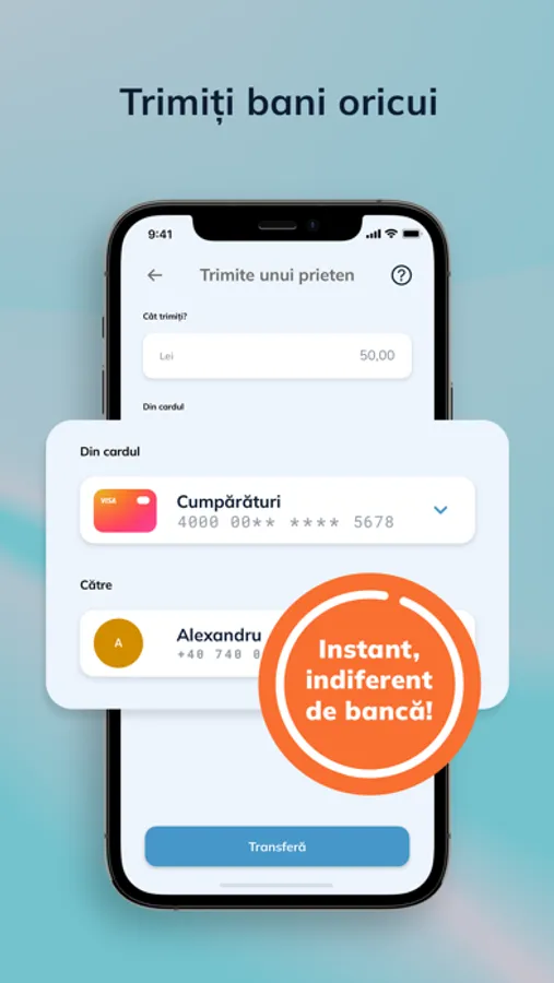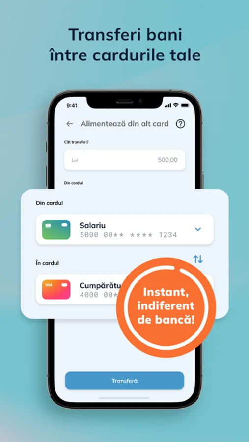 - Transfer money from one card to another - or to friends, regardless of the issuing banks.