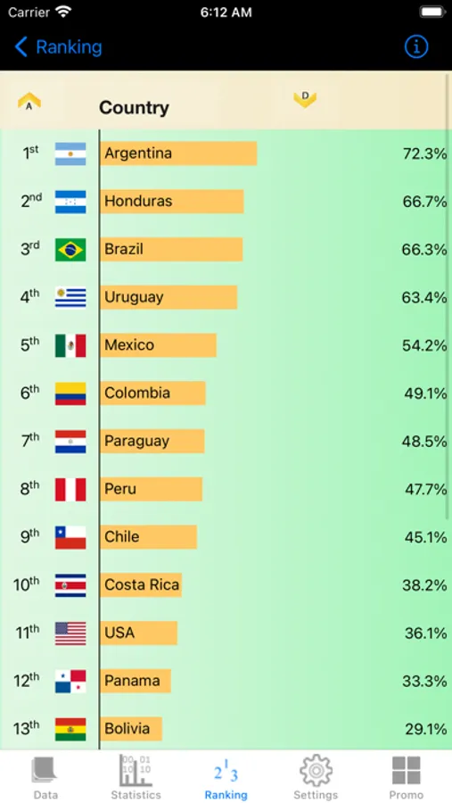 Rank the countries for each of the stats. Rank can be done in ascending or descending order of value or in country alphabetical order.