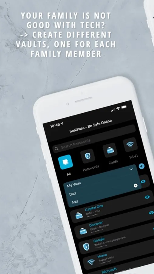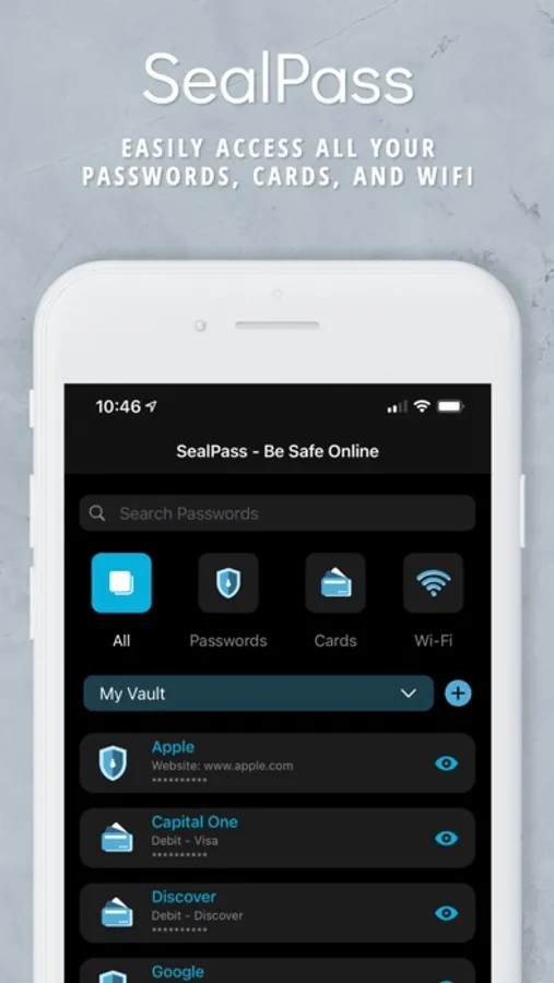 SealPass is an extremely reliable and powerful password manager app that allows you to store different passwords and secure data - totally encrypted so that they are prevented from unauthorized access. You can not only store passwords on the SealPass app but also store other sensitive information such as credit/debit card details or WiFi Passwords. Never be worried about forgetting these details when you have the SealPass Password Manager. You can add passwords into different vaults for different members of your family.