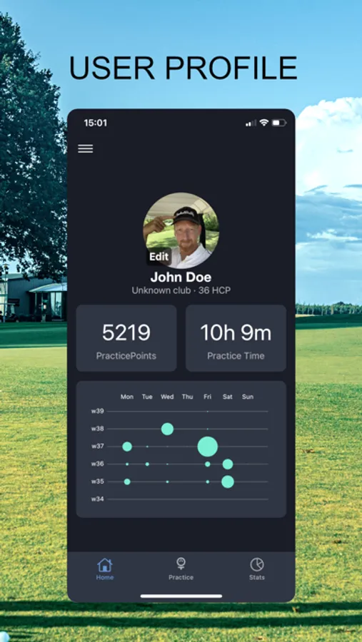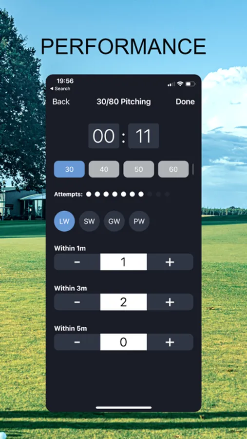 Sessions - a simple way to start tracking how much time you spend on the various parts of your game. You may also track details such as Lie, Club, Slope and Shot shape.