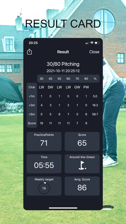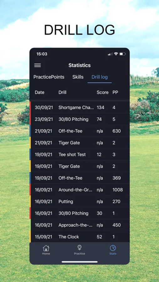 Drill log - Every practice session and drill are stored in a drill log. Revisit your Scorecard and share your best performances with your buddies.