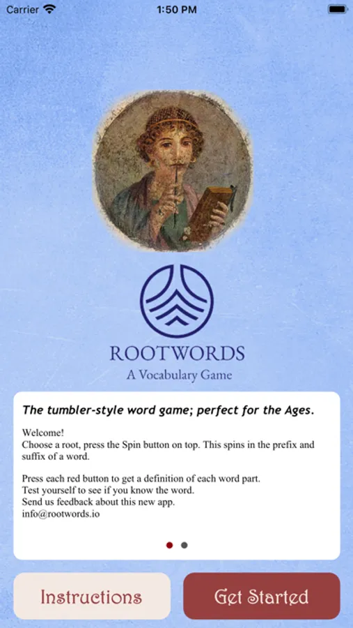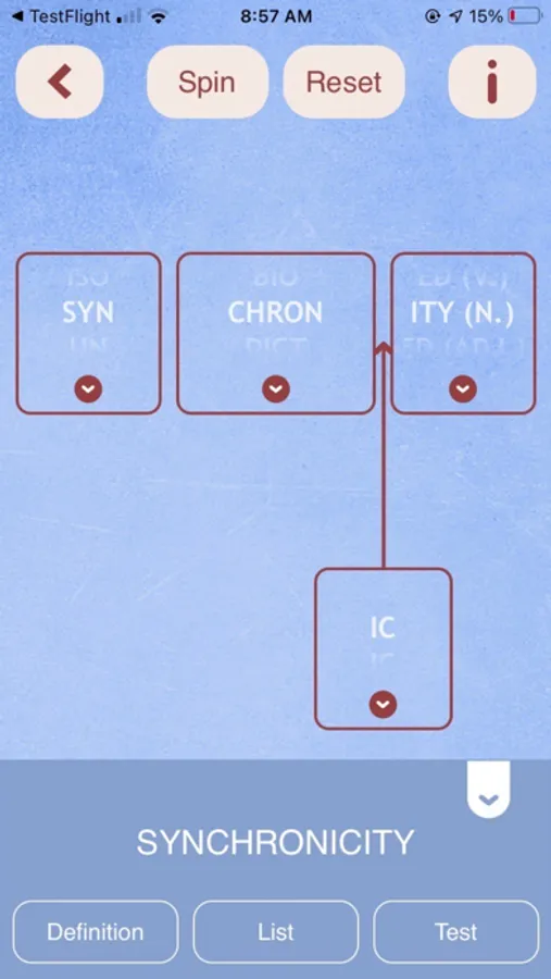 RootWords is a fast word game based on root words. Choose a root, spin as many words as you can and show you know their meaning. Don’t know the word? Tap the parts, they each have meaning and will help you learn the word. The more you play, the fewer times you will need to tap the parts. Good for SSAT, PSAT, SAT, ACT, LSAT, MCAT, IELTS tests and ELL in general. RootWords is good for all learners really. Your score will soar! Improve your vocabulary, your reading skills, your job prospects!