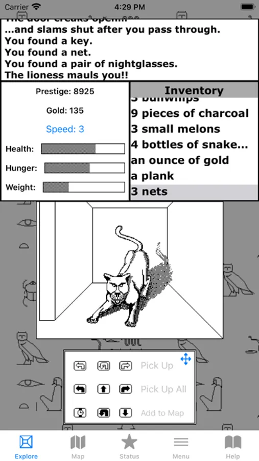Explore the mazes of the Great Pyramid of Ra! Each level is a new, larger, random maze to solve. Find tools and supplies abandoned by earlier, failed expeditions, try to avoid the traps, and encounter dangerous animals and the fearsome Guardians as you seek the three sacred Talismans of Ra the Sun-God. This faithful, retro-styled recreation of the original shareware classic from 1987 also offers optional new game features including new tools and hazards, and controls that allow you to tone down Animal Ferocity and the dangers of traps to suit your preference.